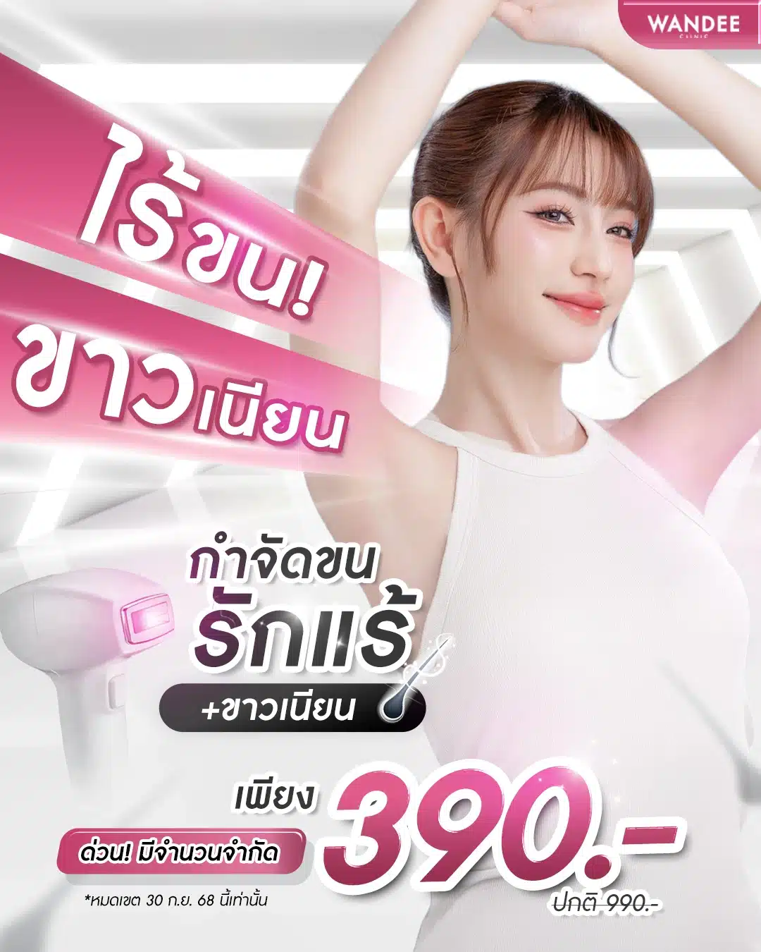 #WandeeClinic #วันดีคลินิก #คลินิกเสริมความงาม #โปรเดือนกันยายน #9.9 #เลเซอร์รักแร้ #กำจัดขน #ขอนแก่น
