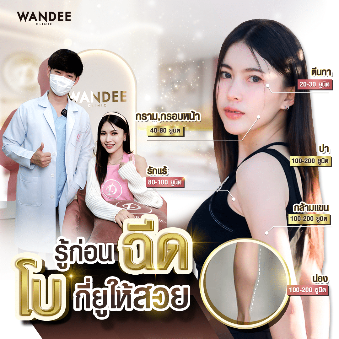 วันดี คลินิก (Wandee Clinic) เป็นคลินิกความงามที่ได้มาตรฐานระดับสากล ด้วยทีมแพทย์ผู้เชี่ยวชาญที่มีประสบการณ์ใช้โบท็อกซ์แท้จากแบรนด์ชั้นนำระดับโลก ที่ได้รับการรับรองจาก อย. จึงมั่นใจได้ในคุณภาพและความปลอดภัย อีกทั้งทีมแพทย์มีการเรียนรู้ทักษะใหม่ๆ อยู่ตลอด ทำให้มั่นใจในคุณภาพได้อย่างแน่นอน