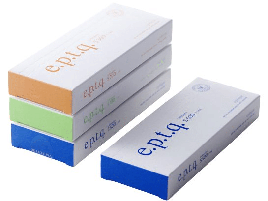ฟิลเลอร์ e.p.t.q. รุ่น e.p.t.q. s100 กล่องสีเขียว ถือเป็นรุ่นที่มีเนื้อนิ่มที่สุด โดยมีจะมีรุ่นย่อย 2 รุ่น คือ รุ่นธรรมดา กับรุ่นที่มี Lidocaine 0.3%