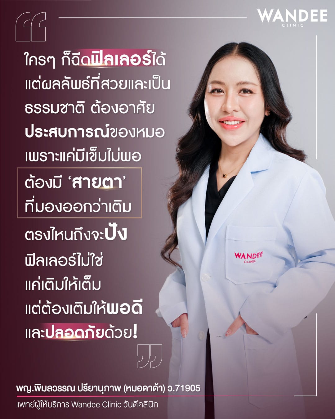 สำหรับใครที่อยากเติมเต็มผิวด้วย ฟิลเลอร์ สามารถเข้ามาปรึกษาแพทย์ หรือจองคิวเข้ารับการรักษาได้ที่ วันดี คลินิก (Wandee Clinic) ทุกสาขา หรือแอดไลน์ @WandeeClinic เพื่อสอบถามข้อมูลได้ตลอดค่ะ