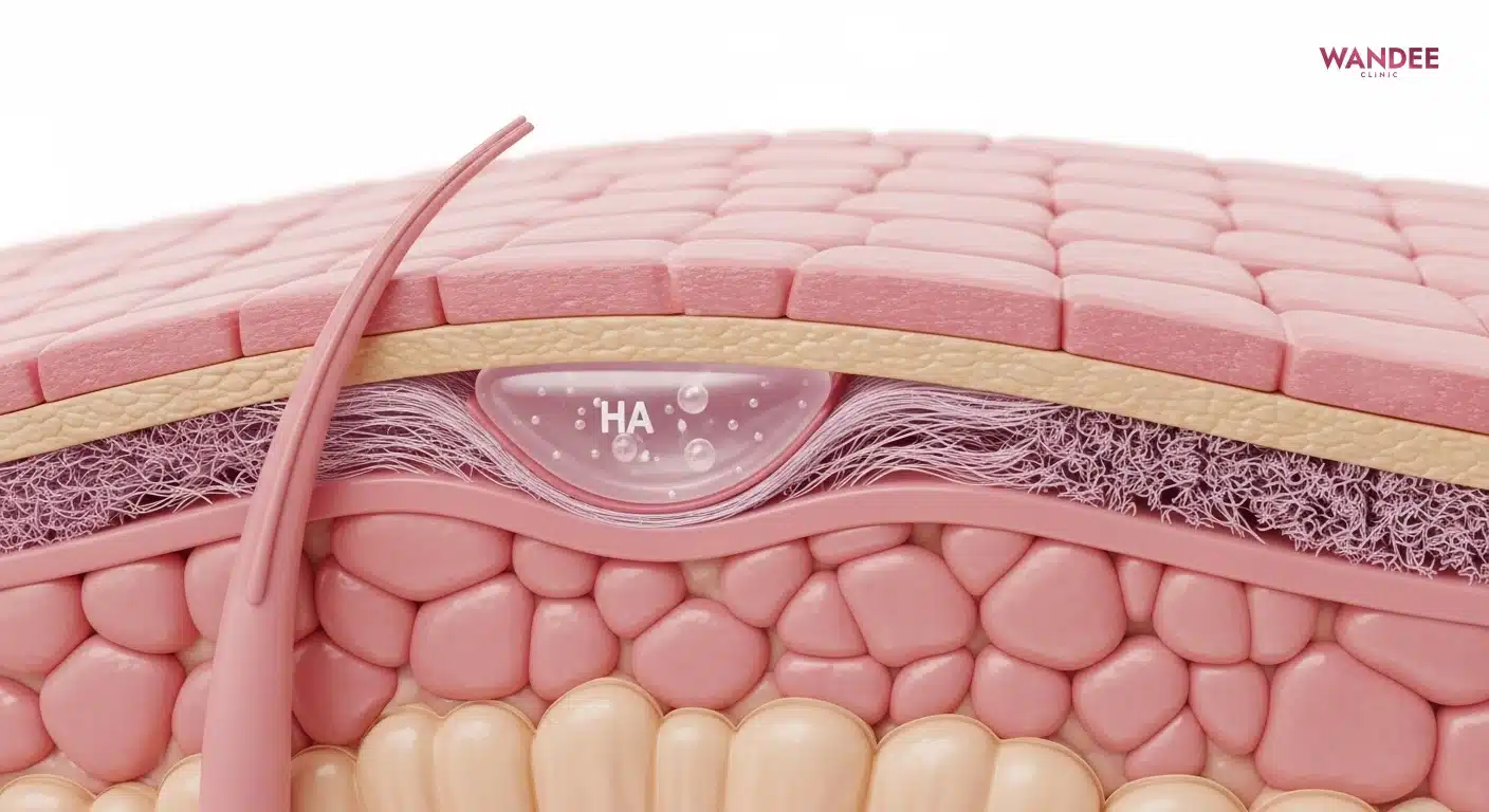 บทความนี้อธิบายแบบหมอคุยกับคนไข้ว่า HA อยู่ตรงไหน ยึดกับอะไรในผิว ทำไมบางเคสดูเนียนมาก บางเคสดูเป็นก้อน รวมถึงปัจจัยที่คุมได้ เช่น ชั้นที่ฉีด เนื้อฟิลเลอร์ และการดูแลช่วงเข้าที่ เนื้อหาจัดทำโดยทีมแพทย์จาก คลินิกความงาม
