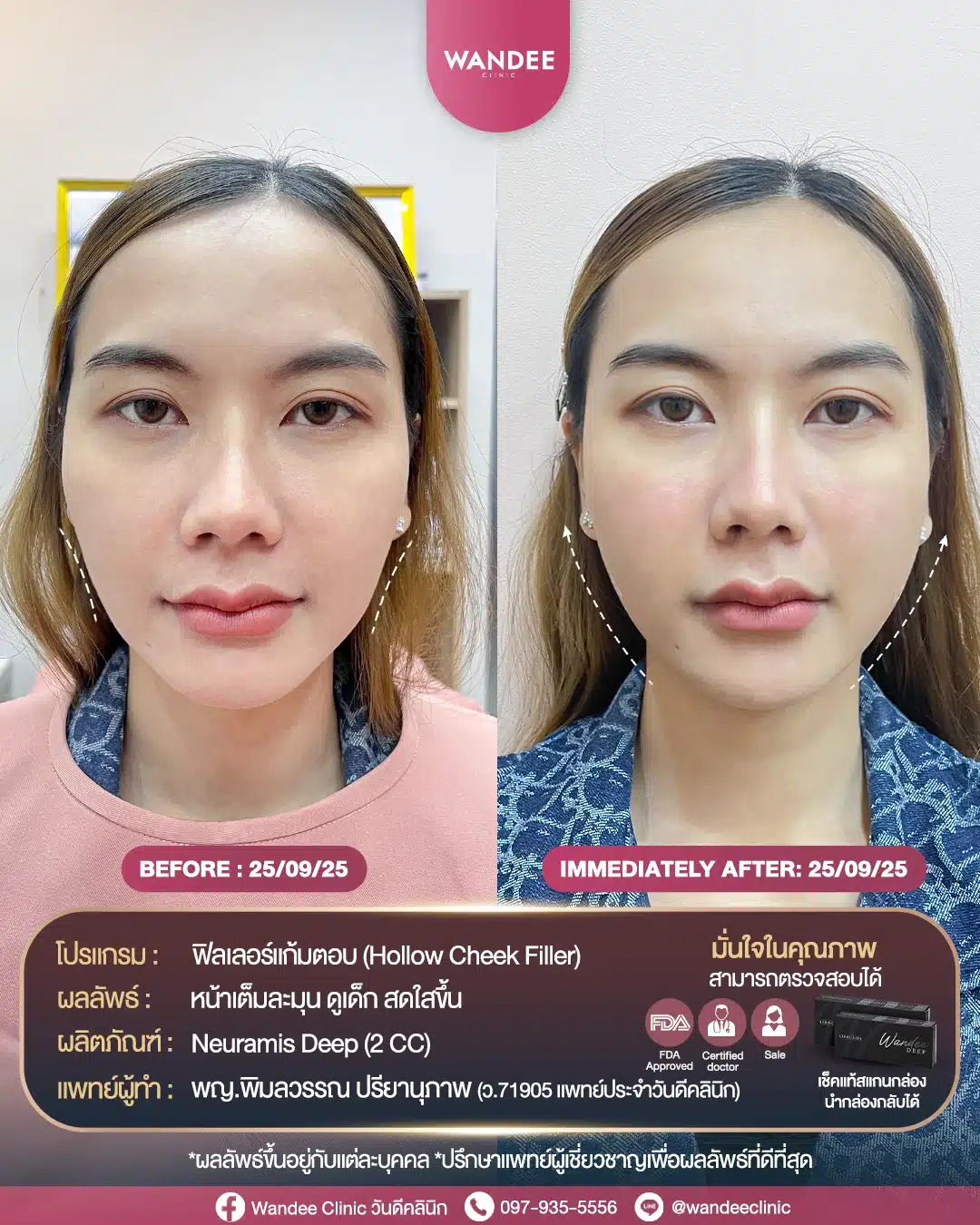 #WandeeClinic #วันดีคลินิก #คลินิกเสริมความงาม #ฟิลเลอร์แก้มตอบ #ขอนแก่น