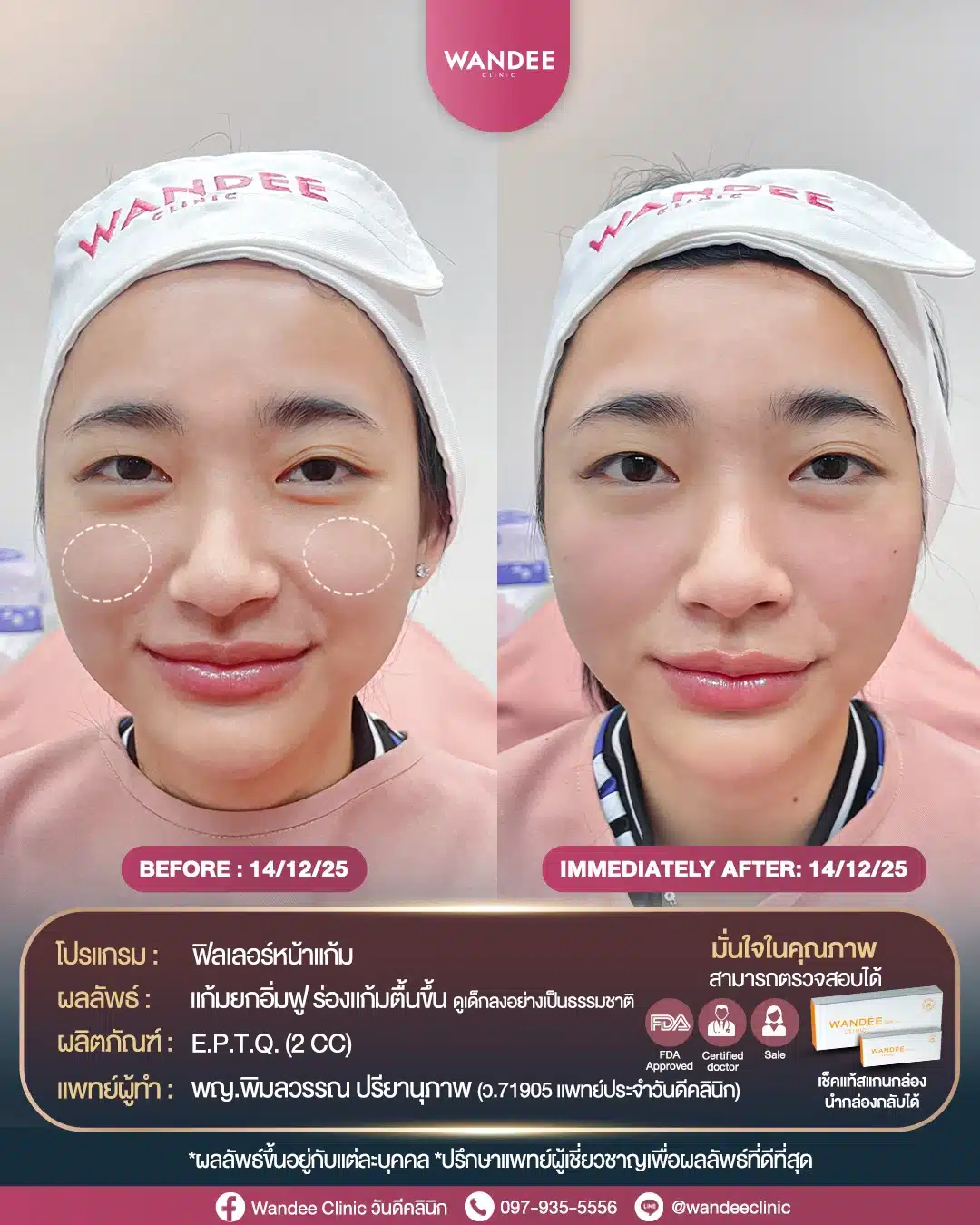 ทั้งนี้ การฉีดฟิลเลอร์ให้ปลอดภัย ต้องฉีดกับแพทย์ผู้เชี่ยวชาญโดยตรงเท่านั้น และต้องใช้ฟิลเลอร์แท้ที่มีอย. สามารถตรวจสอบได้ เพื่อความปลอดภัยหลังฉีด