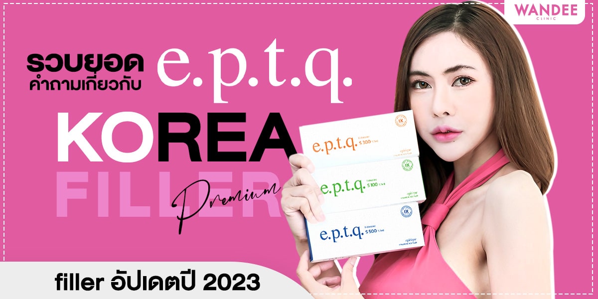 ปัจจุบันการฉีดฟิลเลอร์ได้รับความนิยมสูงมากในทุกเพศ ทุกวัย ซึ่งฟิลเลอร์ยอดฮิตที่สาว ๆ หนุ่ม ๆ ไทยนิยมฉีดกันมาก คงจะหนีไม่พ้น e.p.t.q. filler ฟิลเลอร์ตัวฮอตจากเกาหลี สาว ๆ หลายคนที่มีความสงสัยในเรื่องของการฉีดฟิลเลอร์ วันนี้ทาง Wandee Clinic เราก็ได้รวบรวม รวบยอดคำถามเกี่ยวกับ e.p.t.q. filler อัปเดตปี 2023 ที่หลาย ๆ คนสงสัย มาคลายความกังวลให้สาว ๆ ก้อนฉีดฟิลเลอร์