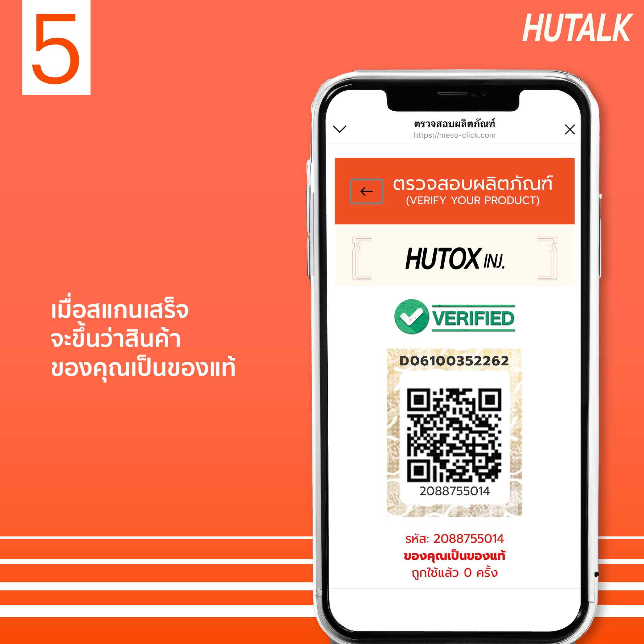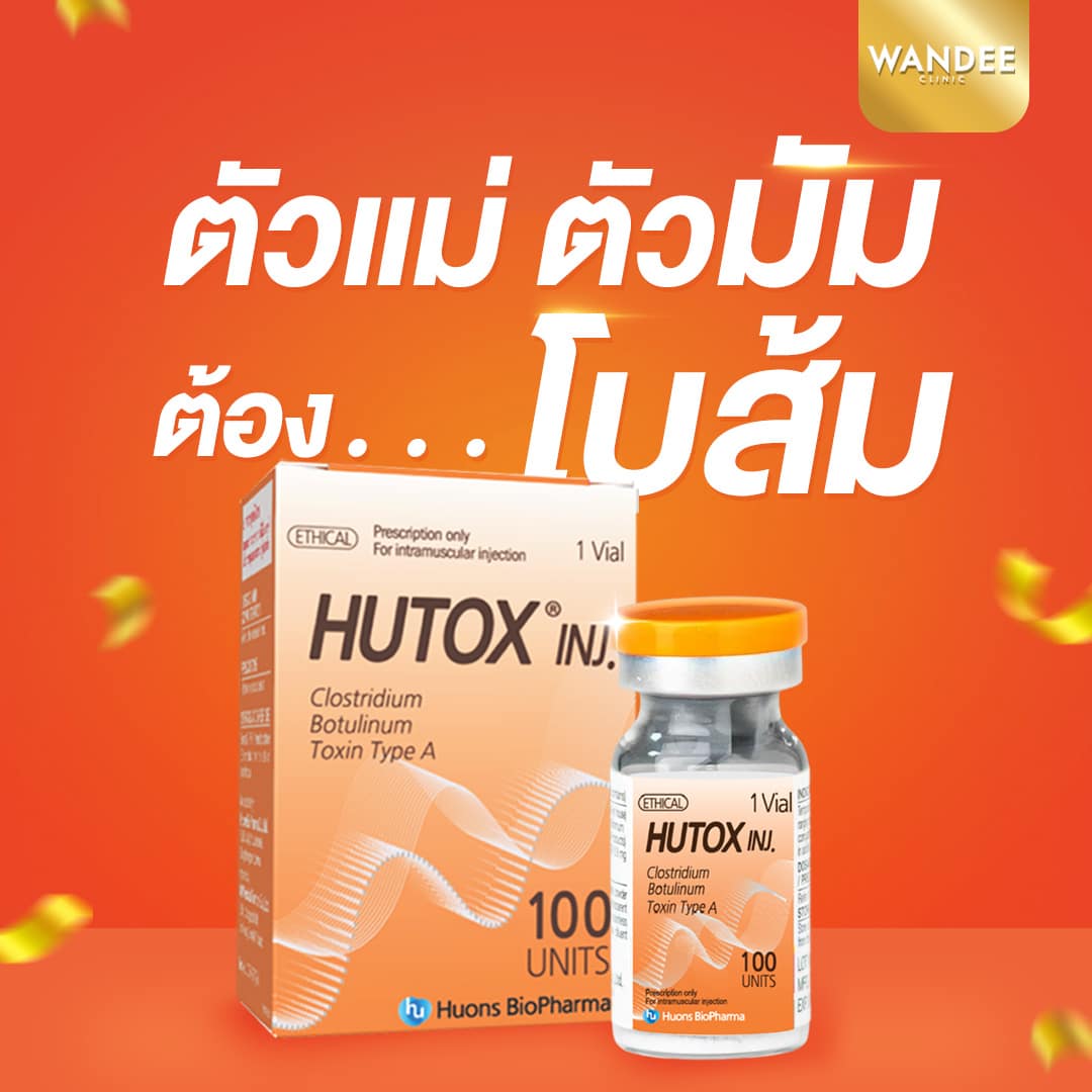 Hutox คือ โบท็อกซ์ที่มีส่วนประกอบที่สำคัญคือ Botulinum Toxin Type A (HU-014) ขนาด 900kDA มาในรูปแบบ Lyophilized Powder ซึ่งมีจุดเด่นคือมีความบริสุทธิ์สูงถึง 99.8% เริ่มรู้สึกตึงได้ไว ทั้งยังมีราคาที่เหมาะสม จึงทำให้เป็นโบท็อกซ์ที่กำลังจะได้รับความนิยมในไม่นานอย่างแน่นอน แต่ทั้งนี้ก่อนฉีดทุกครั้งก็ควรเลือกฉีดกับคลินิกที่มีมาตรฐาน มีแพทย์ผู้เชี่ยวชาญเป็นผู้ทำการรักษา และเช็คให้ชัวร์ว่าเป็นโบท็อกซ์ของแท้ มีรายละเอียดภาษาไทยกำกับครบถ้วน พร้อมหมายเลข อย. ที่ข้างกล่อง และแพทย์จะต้องแสดงรายละเอียดให้เราดูอย่างครบถ้วนก่อนเริ่มการรักษา