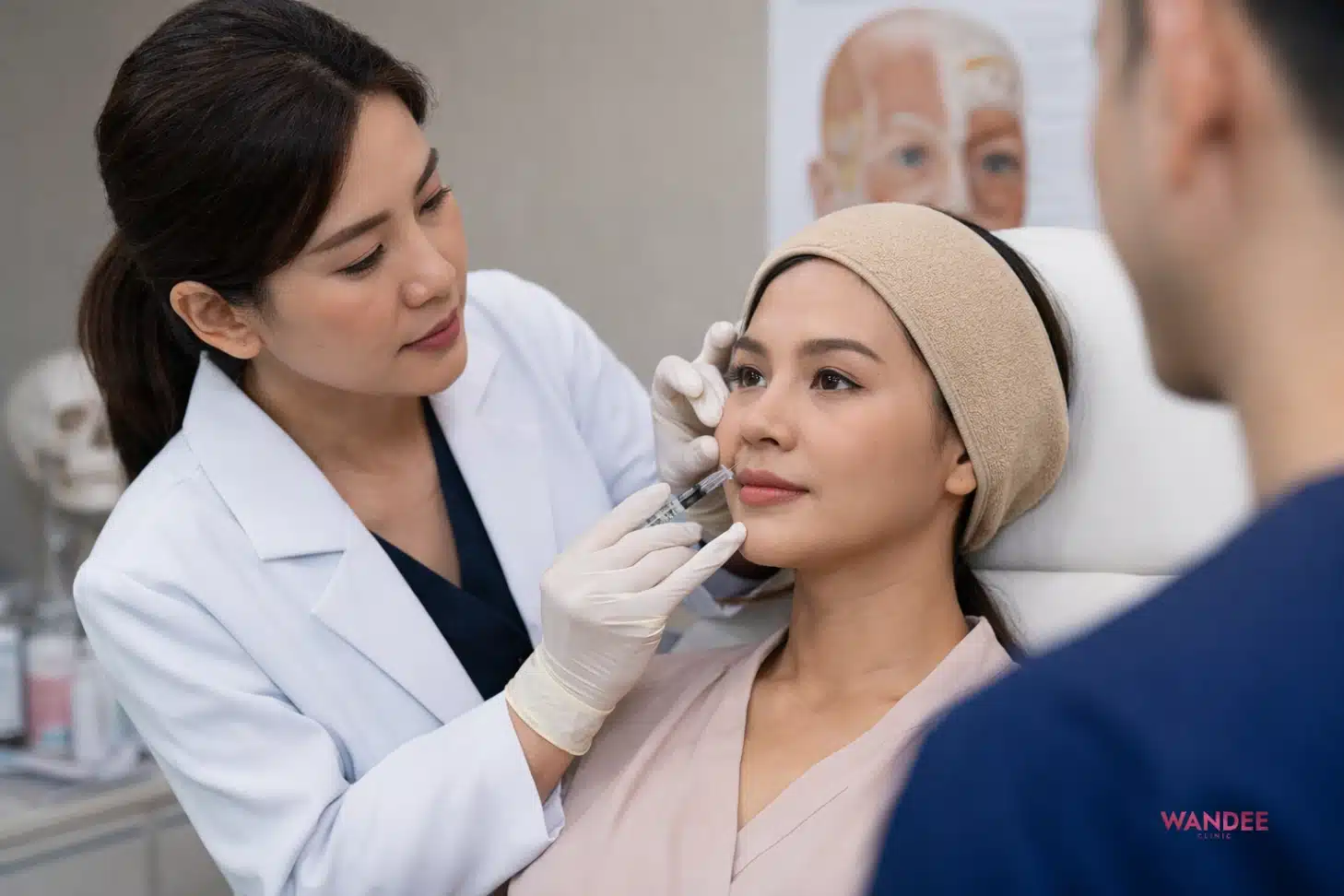 แพทย์จึงประเมินว่าควรพยุงในชั้นลึกเพื่อยกฐาน หรือเติมชั้นตื้นเพื่อเก็บรายละเอียด โดยใช้ปริมาณน้อยที่สุดที่ให้ผลเนียน