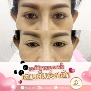” หลังฉีดเสร็จเห็นได้ชัดเลยค่ะว่าใต้ตาดูเต็มฟู และความหมองคล้ำลดลงอย่างเห็นได้ชัดเลยค่ะจากเดิมที่ใต้ตาดูหมองคล้ำแต่ตอนนี้ดีขึ้นมากค่ะ รู้สึกพอใจและประทับใจมากค่ะ “